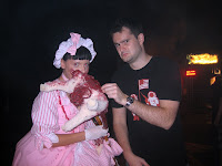 Wednesday was the employee-only night for Halloween Horror Nights 08. It’s crazy to think that I’ve been to three of these bad boys already. This one was definitely one of the most fun. George, Bruce, Rio, Greg and I went out for the ‘Advanced Screaming’ and had a great time. Some of the houses where a little dubious, but I know it was essentially a test night for a lot of the scare-actors and a fair few of the effects where not running until the full event starts this weekend. This year they had a focus on ‘scare zones’ much more than previous iterations, and the result works really well. Instead of the occasional characters wandering around between the haunted houses, there were five or six themed areas that where flooded with people waiting to scare you. They ranged from a crashed school bus filled with evil trick-or-treaters to chainsaw wielding guys in straight jackets.